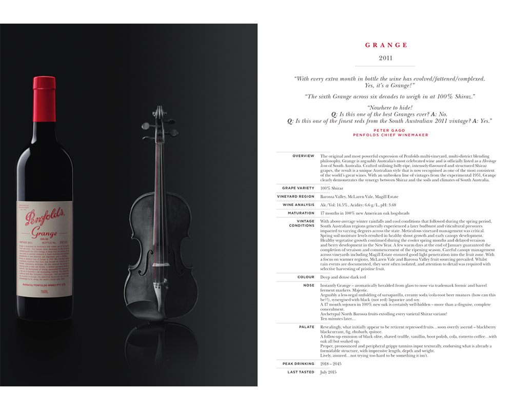 100%的西拉(Shiraz)、平均树龄高达60年、精选巴罗萨谷及麦克拉伦谷最优质品种