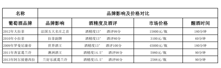 最后我们来五款名酒作一个汇总对比,请看下表: