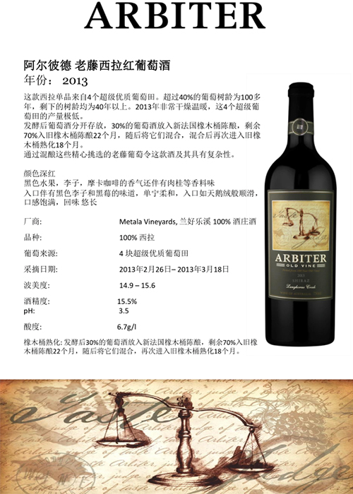 Arbiter阿尔彼德---只选最佳年份老藤葡萄特别酿造的澳大利亚优质红酒
