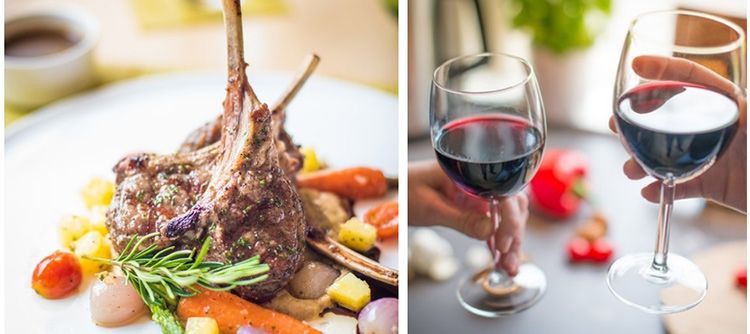 而红肉味道重、脂肪含量高,常佐以浓重的酱汁,应搭配酒体较饱满的红葡萄酒,双方体量相当,不致某一方被盖过风头。此外,红肉中的蛋白质会同单宁发生反应,从而软化酒液的干涩感,红葡萄酒中的酸度和单宁也能起到解腻的作用。这方面的范例有法式烤羊排配波尔多:羊排肉质细嫩而多汁,在口中释放出丝丝来自油脂的肥美,再呷一口醇厚的波尔多混酿(Bordeaux Blend),油润的脂肪中和了单宁的艰涩,单宁和酸度也反过来为油腻感解了围,使羊肉的鲜美本味得以凸显,令人口舌生津。
