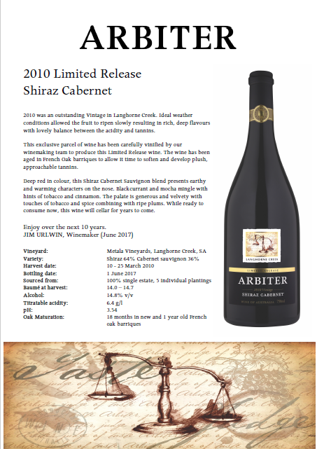 “ARBITER阿尔彼德”窖藏版2010特酿西拉赤霞珠